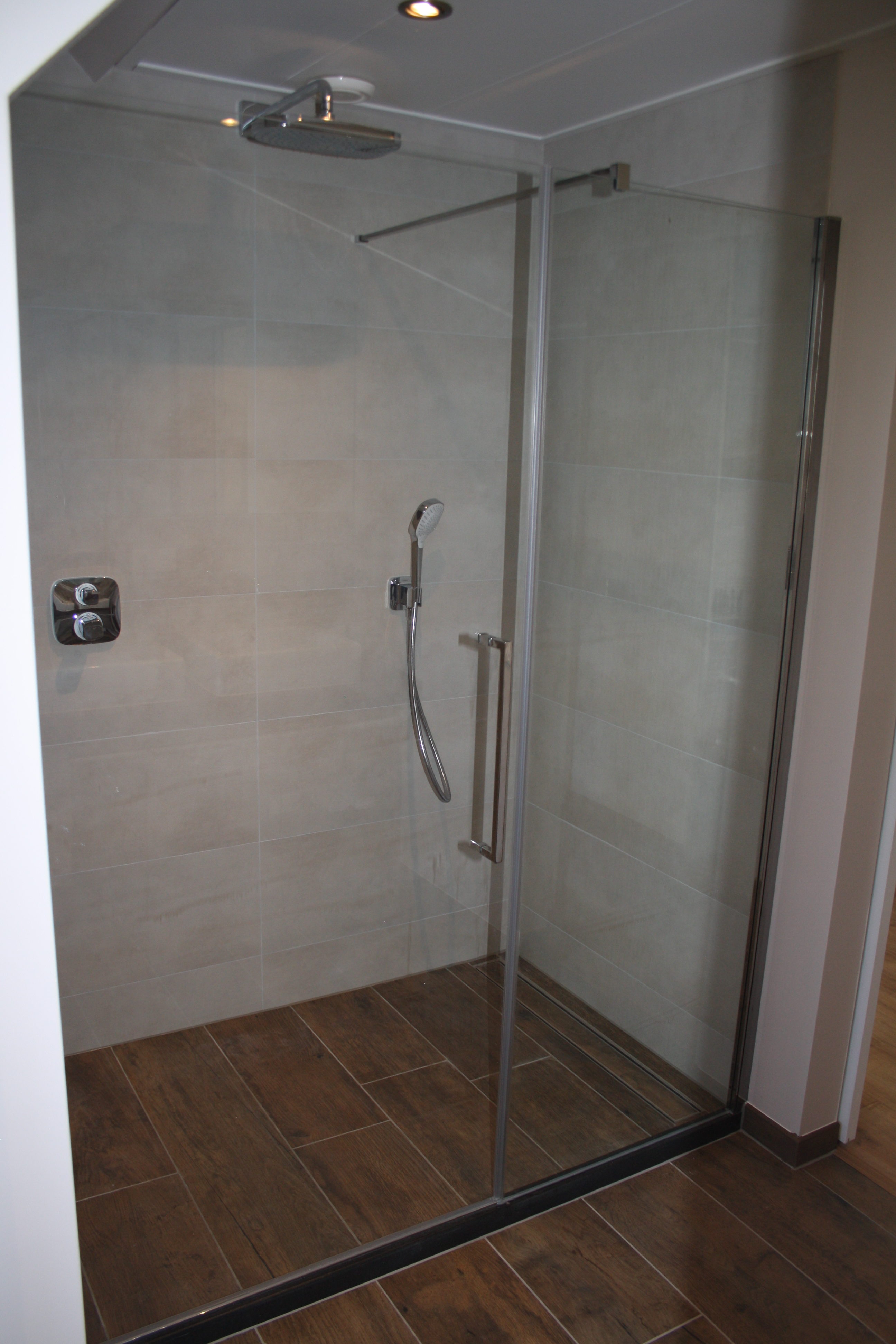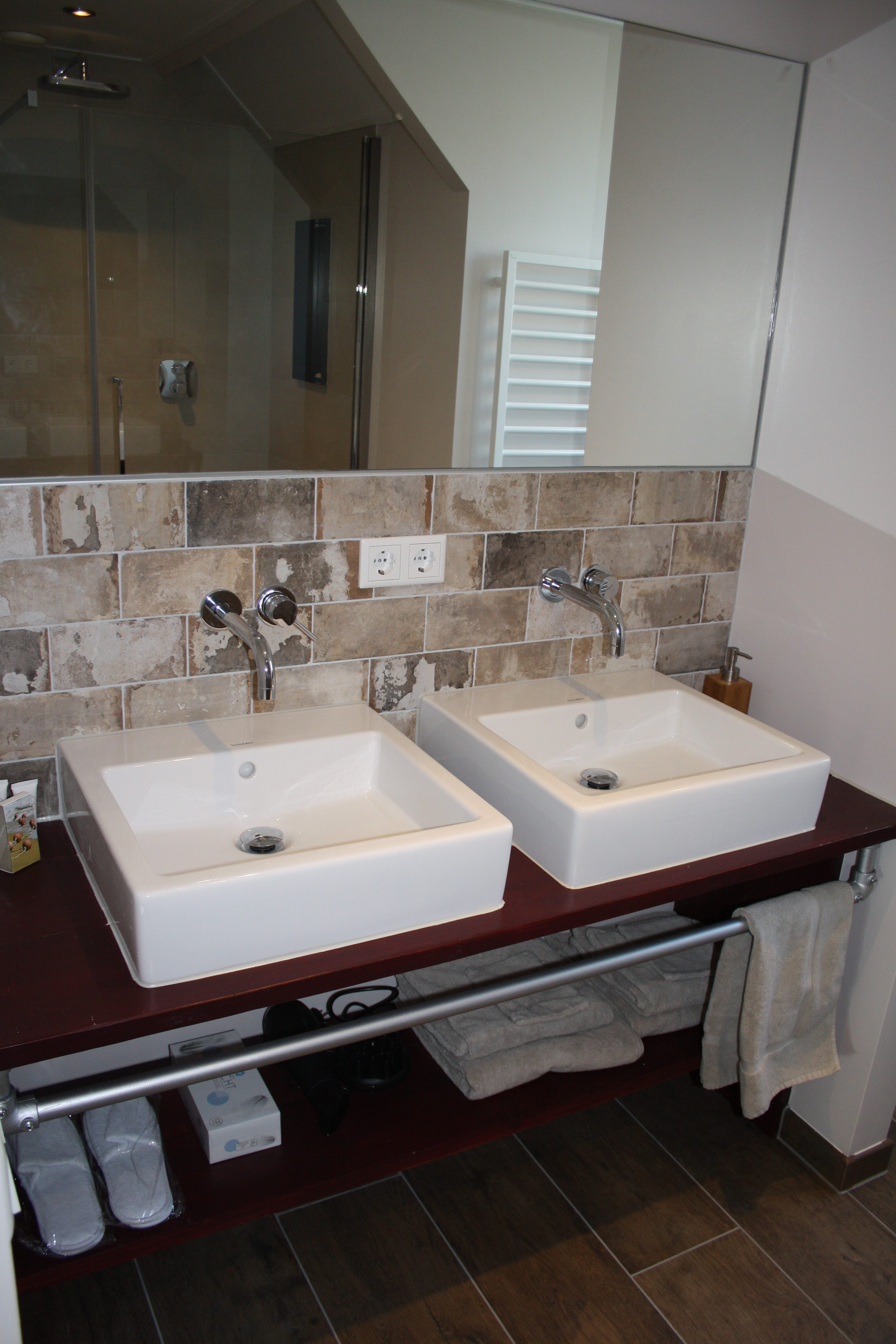 De badkamer heeft een grote douchecabine met regendouche en handdouche. Er is een dubbele wastafel met haarföhn en een toilet. Handdoeken liggen voor u klaar.