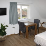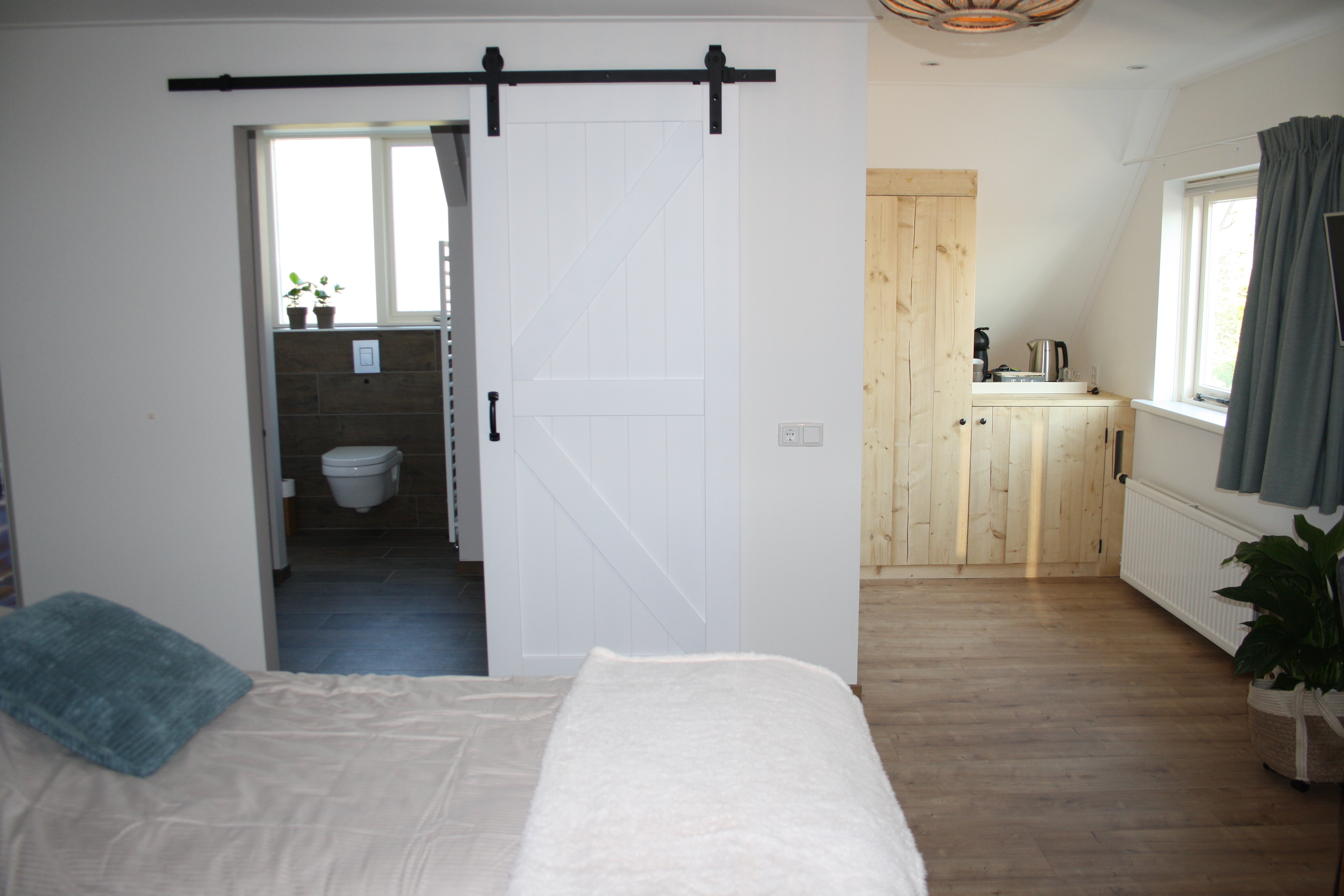De Zonkamer ligt op de 1e verdieping van onze woning en is via een trap bereikbaar. De Zonkamer heeft 2 boxspring-bedden van 90×200 cm.